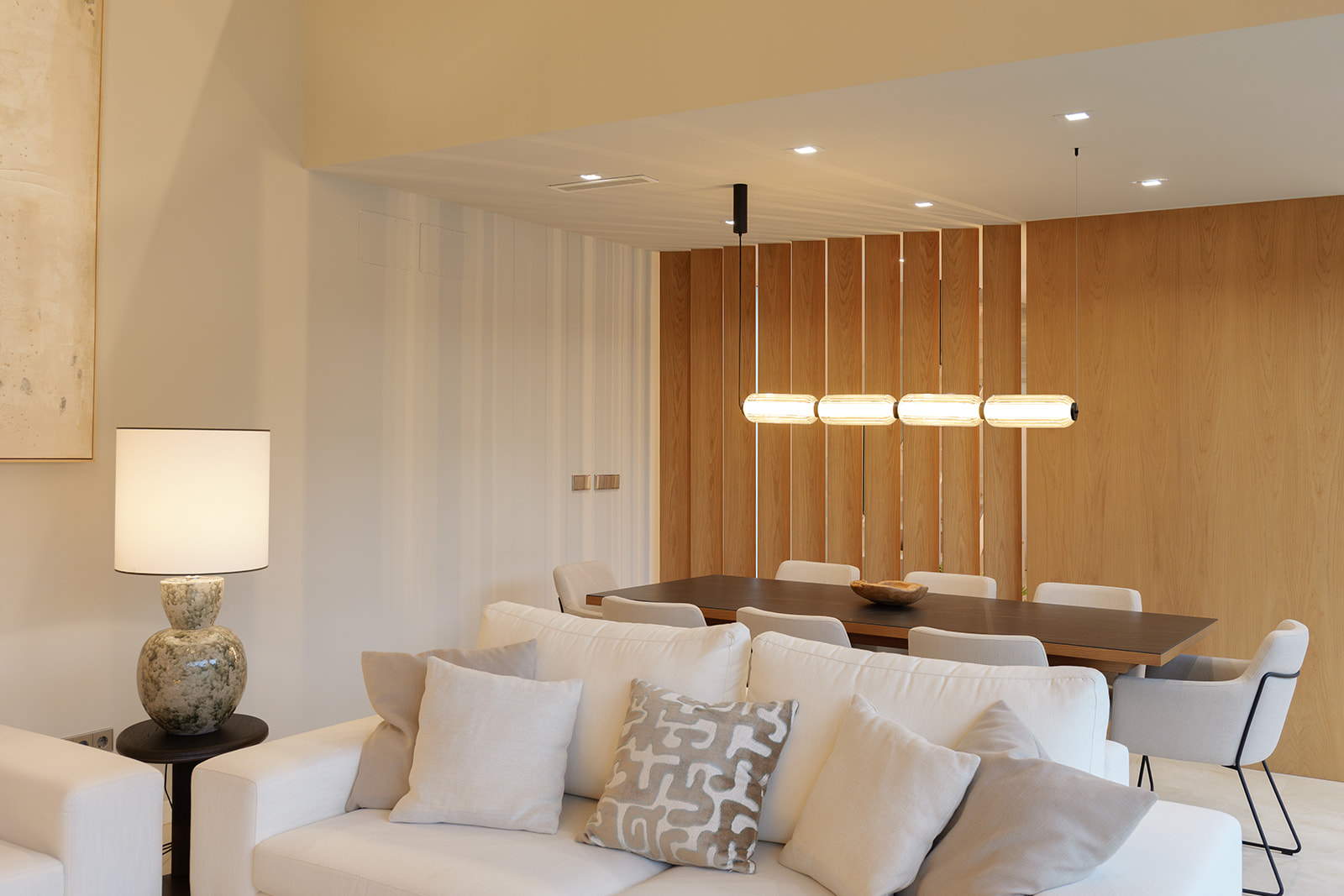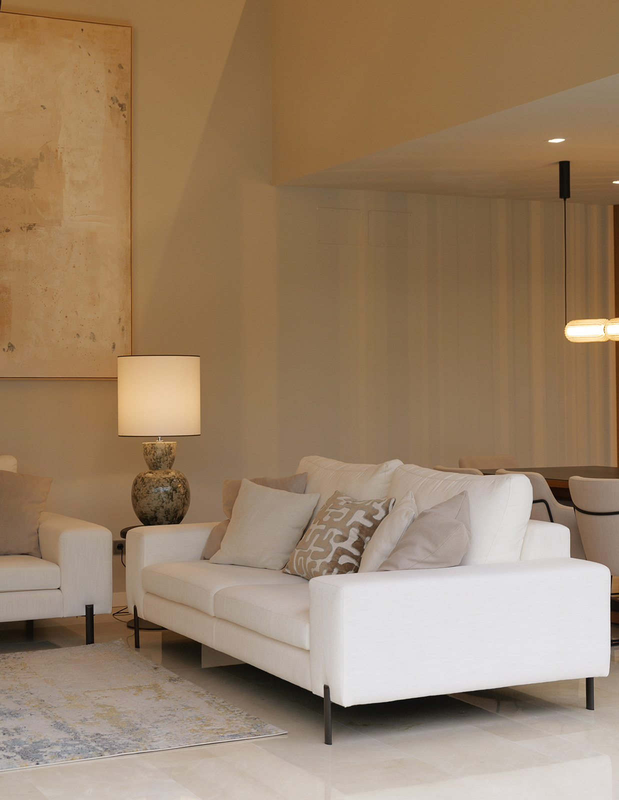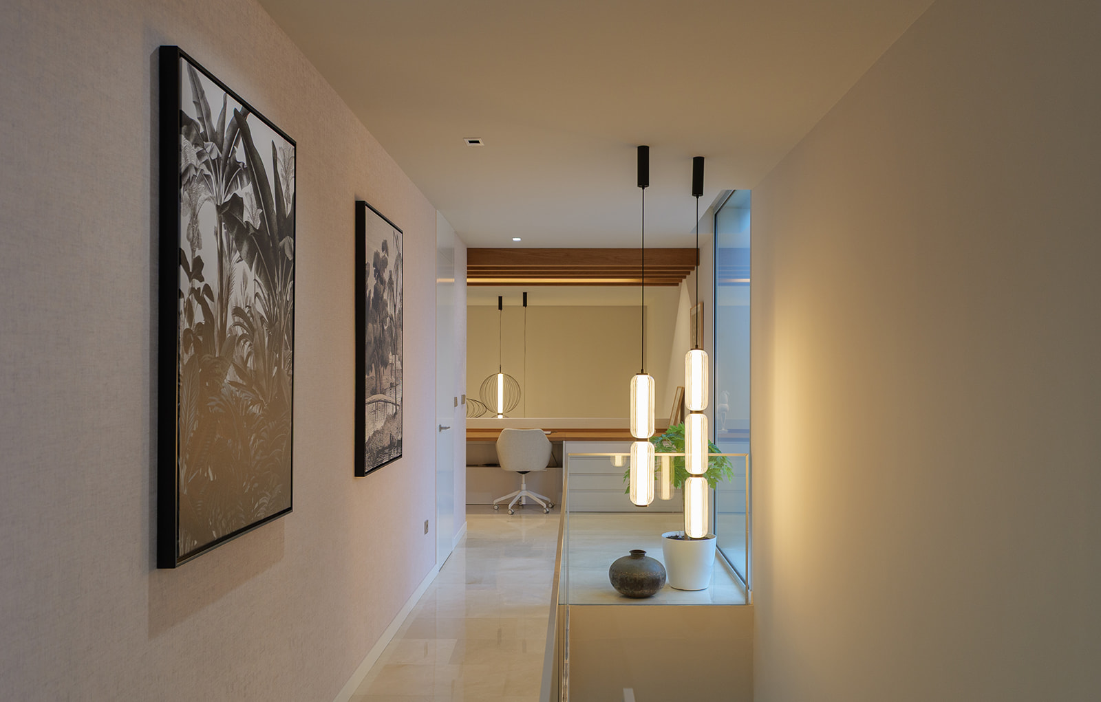 Para este trabajo de decoración interior, apostamos por el uso de materiales naturales y una iluminación técnica e indirecta de tono cálido. Junto con una cuidada selección de mobiliario de diseño, logramos crear una atmósfera envolvente y equilibrada, manteniendo la funcionalidad y potenciando la estética contemporánea de la vivienda. El resultado final es un hogar sereno y funcional, donde el interiorismo de vanguardia y el confort conviven en perfecta armonía.