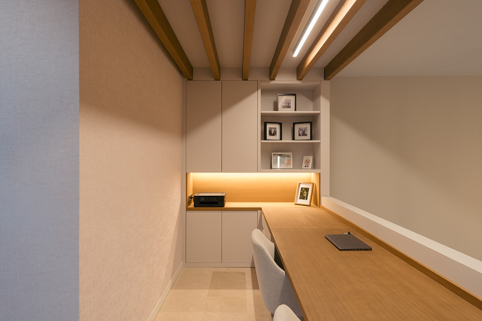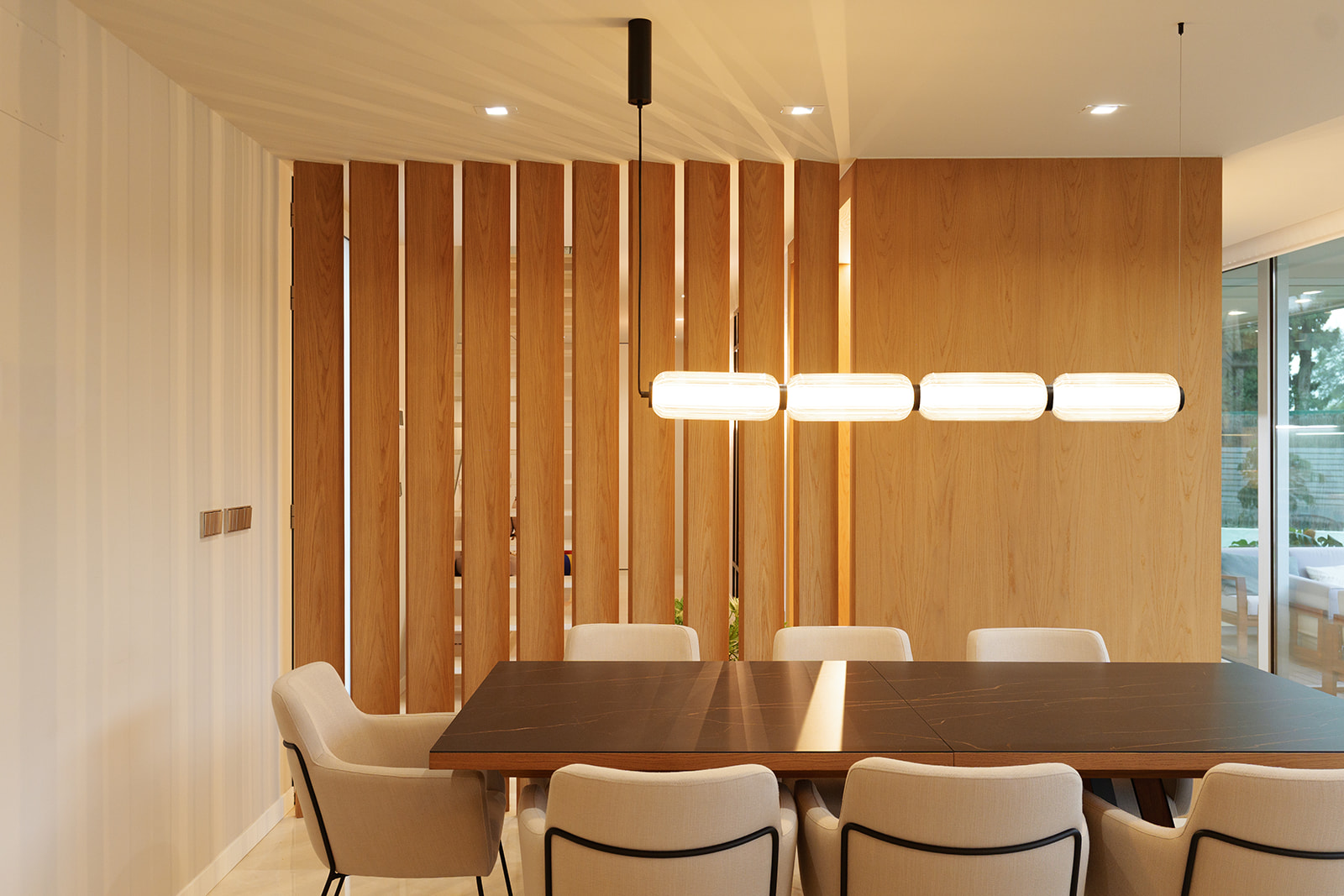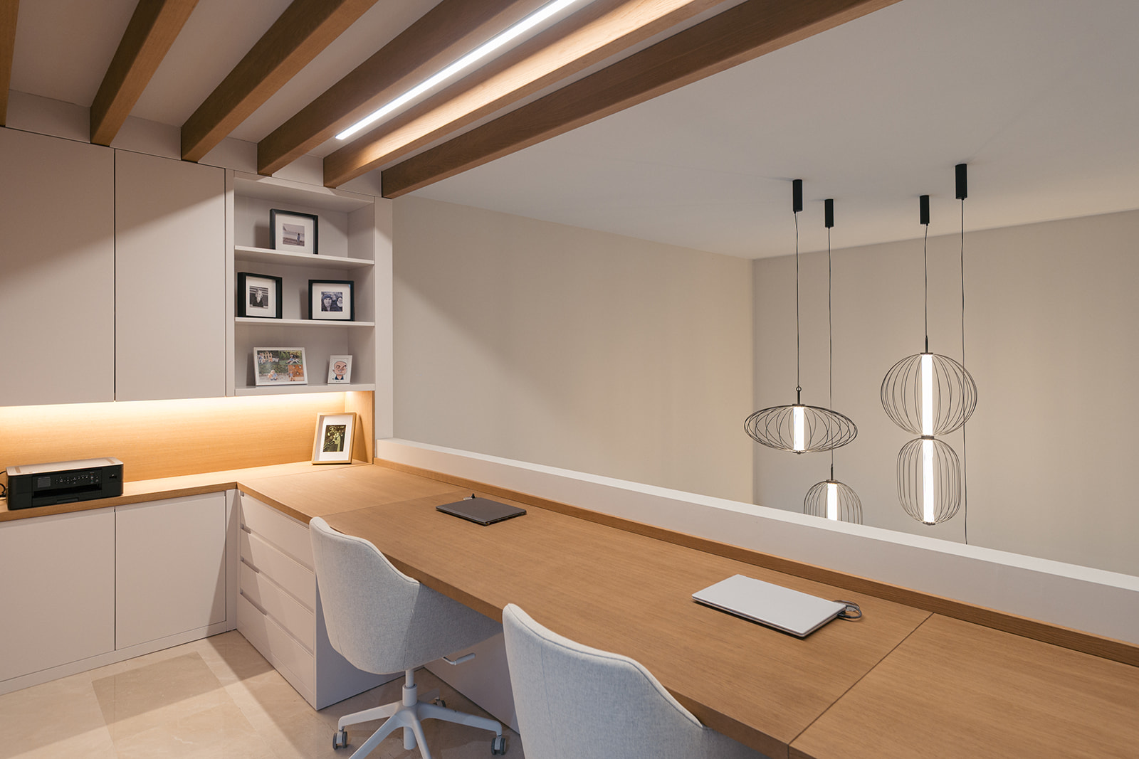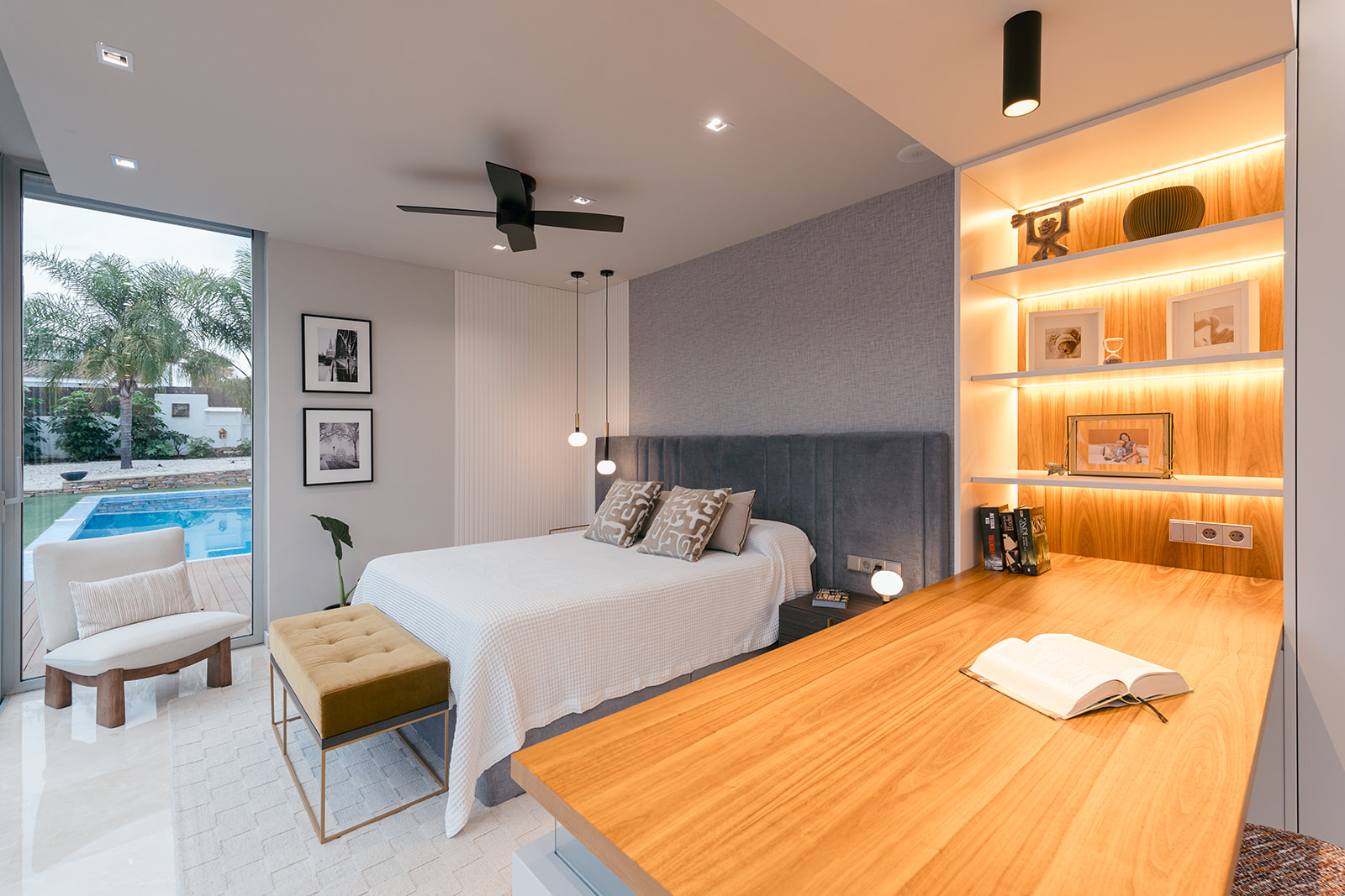 Para este trabajo de decoración interior, apostamos por el uso de materiales naturales y una iluminación técnica e indirecta de tono cálido. Junto con una cuidada selección de mobiliario de diseño, logramos crear una atmósfera envolvente y equilibrada, manteniendo la funcionalidad y potenciando la estética contemporánea de la vivienda. El resultado final es un hogar sereno y funcional, donde el interiorismo de vanguardia y el confort conviven en perfecta armonía.